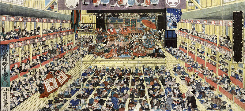 Эдогийн үеийн эхэнд анх Кабүки бий болсон бөгөөд тухайн үед өнөөдөр шиг жижгийн хэлбэртэй биш харин зөвхөн дуу хөгжмийн дагуу бүжиг бүжиглэдэг байсан.