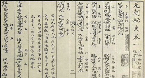 元朝秘史 📅 2008.11.27 · 🏷️ 注目の記事 ⏱️ 1 min read モンゴル秘史とも呼ばれる。13世紀に書かれたチンギス・ハーンの一代記。天命を受けて降った「蒼き狼」を先祖とするチンギス・ハーンが、幼少時の苦難を乗り越え、やがて世界の覇者となっていく物語。 現存する元朝秘史は、漢字によって音写されたモンゴル語によるものである。 明代に漢字音写されたものが伝わるが、原書の文字はいまだ不明。語頭摩擦音の存在などから、[モンゴル文字→パスパ文字→漢字]の順で転写された可能性もある。 Post Views: 8