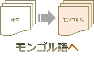 モンゴル語から日本語へ、日本語からモンゴル語へといった通常の翻訳の他にも、多言語間の翻訳を承っております。各種言語からモンゴル語へ、あるいはモンゴル語から各種言語への翻訳が可能です。特殊な言語との組合せの場合は、可能な限りご相談に応じさせていただきます。